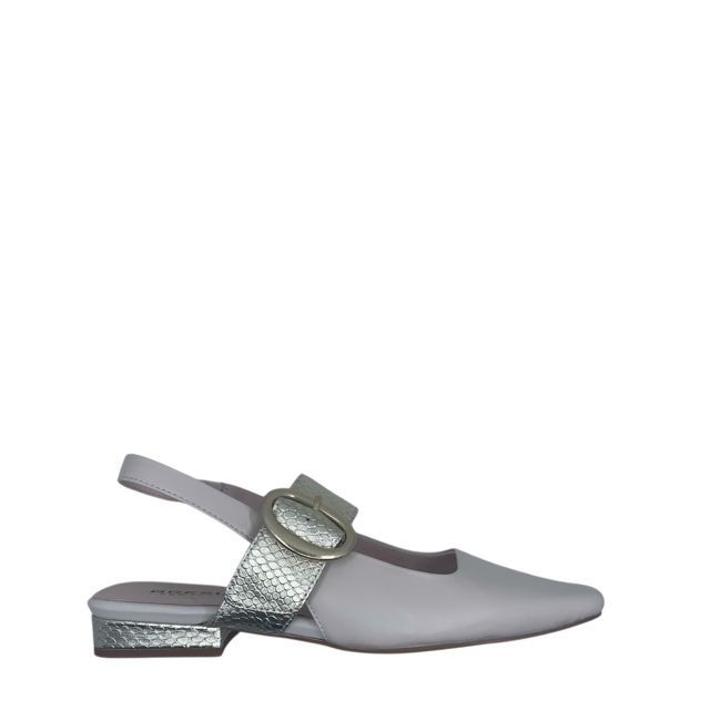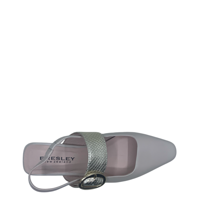 Elegant and versatile, BRESLEY SLASHER is a flat sling-back and is a sophisticated choice for any occasion. Designed with an elastic sling-back for ease of wear, it features a striking gold accent around the heel and a chic gold strap with buckle detail across the foot. A polished flat that brings style and refinement to your wardrobe. Leather - designed in New Zealand.