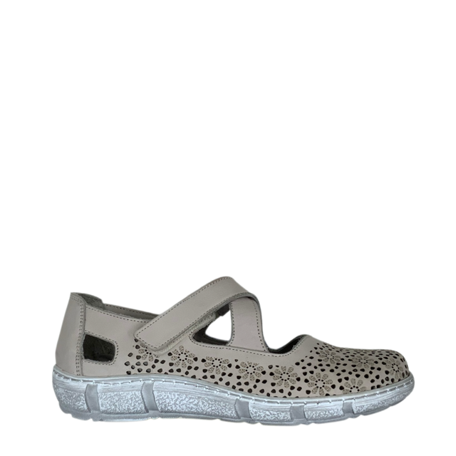 The CP855-57 is a versatile and stylish summer shoe designed with comfort in mind. It features soft punched leather uppers for breathability, complemented by a secure cross-leather Velcro strap for easy adjustment. A removable leather insole allows for personalized comfort or the use of orthotics, while maintaining a soft, cushioned feel underfoot. Available in taupe a great colour to team with your summer wardrobe.