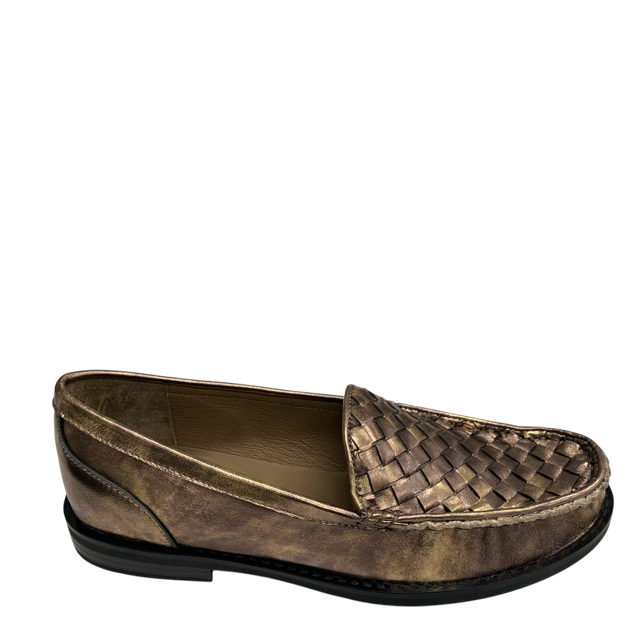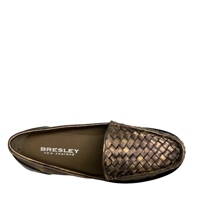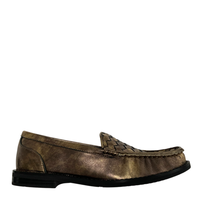 Polished yet playful, STOMP by BRESLEY in bronze is a loafer that makes everyday dressing feel a little more special. The woven metallic finish adds luxe texture, while the structured shape keeps it smart enough for work. Easy to slip on, light on the feet, and in eye-bronze leather, this is the shoe that will take you effortlessly from office hours to after-hours.