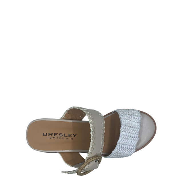 Step into effortless style with this season's BRESLEY STACE wedge slide. Featuring a flattering 6cm wedge heel, natural tonings and a chic woven leather front, its finished with a raffia buckle for a touch of sophistication. A perfect blend of style and comfort, this slide will take you from day to evening with ease. Designed in New Zealand.