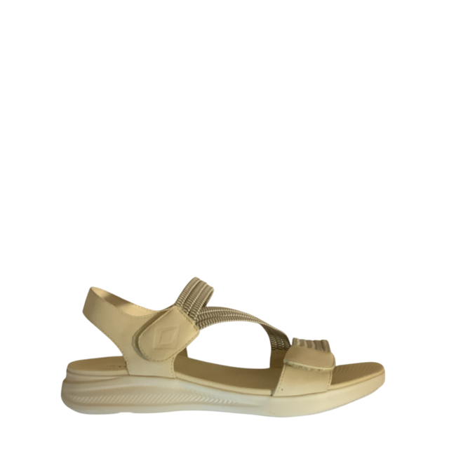 A very soft comfort sandal for everyday casual wear. Velcro straps for personalised fit, stretch fabric upper and contoured footbed. Beach or BBQ, you wont want to take them off! Available in beige, black, black multi, light khaki, navy or olive. Note the black multi elastic is a blue/grey colour. Beige Multi elastic has a brown fleck though it.