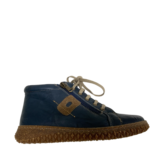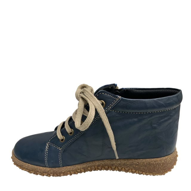 The 7080-303 is a stylish crinkle leather boot featuring eye-catching contrast stitching and leather accents. With a convenient side zip, you only need to tie the laces once, making it easy to slip in and out. The flexible sole and cushioned innersole provide all-day comfort, and for added convenience, the innersole is removable to accommodate orthotics.